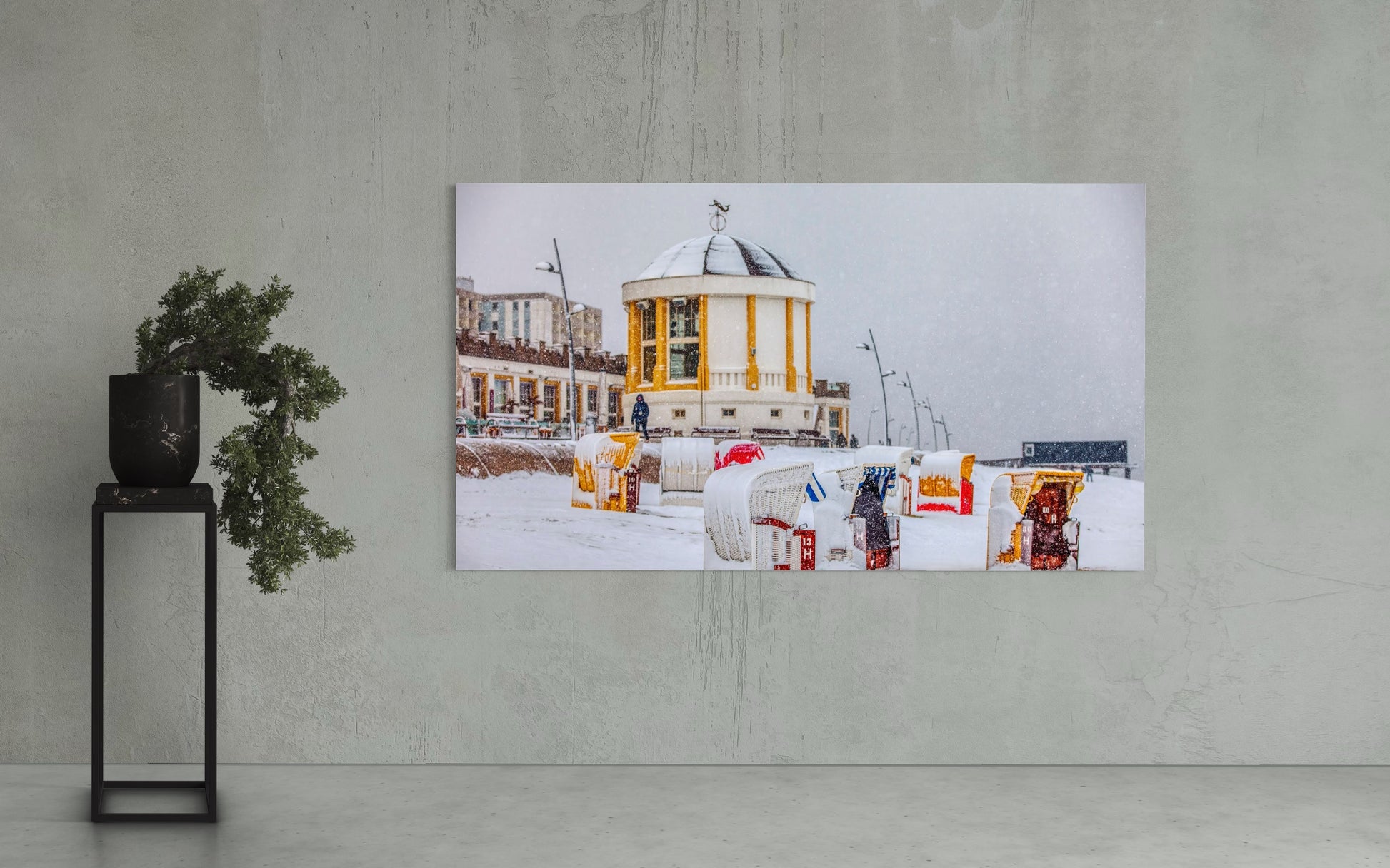 Schnee auf Strandkörben,